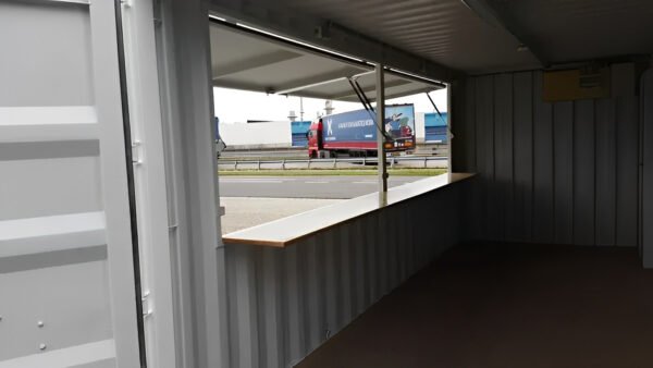 20ft Bar Container Key Features: Fully Customizable: Tailor the design to match your brand, service concept, or event theme. Perfect for Events & Festivals: Specifically designed as a pop-up bar or food service station. Durable Corten Steel Construction: Long-lasting, corrosion-resistant material for outdoor use. Integrated Steel Awning: Provides shaded serving space and customer protection. Stackable Design: Save space during storage or multi-container setups. High-Security Lockbox: Prevents unauthorized access when not in use. Double Galvanized High Lockings: Added security and operational safety.