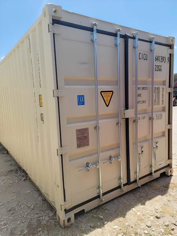 20ft Open Side Shipping Container – Dual Side Doors Key Features Dimensions: 20′ L × 8′ W × 8′6″ H (6.06m × 2.44m × 2.59m) Condition: One-trip – clean, like-new condition with minimal wear Dual Full-Length Side Doors: Two large swing-out doors on the long side for easy forklift or wide-load access (not accordion-style) End Cargo Doors: Standard double cargo doors for additional loading and unloading convenience Construction: High-strength Corten (COR-TEN) anti-corrosive steel for long-term durability and rust protection Flooring: Marine-grade hardwood flooring designed for heavy-duty loads Security: Lockbox-ready for enhanced protection and peace of mind Finish: Factory-applied neutral color (varies slightly by unit, all clean and uniform) Ventilation: Equipped with passive vents to prevent condensation buildup