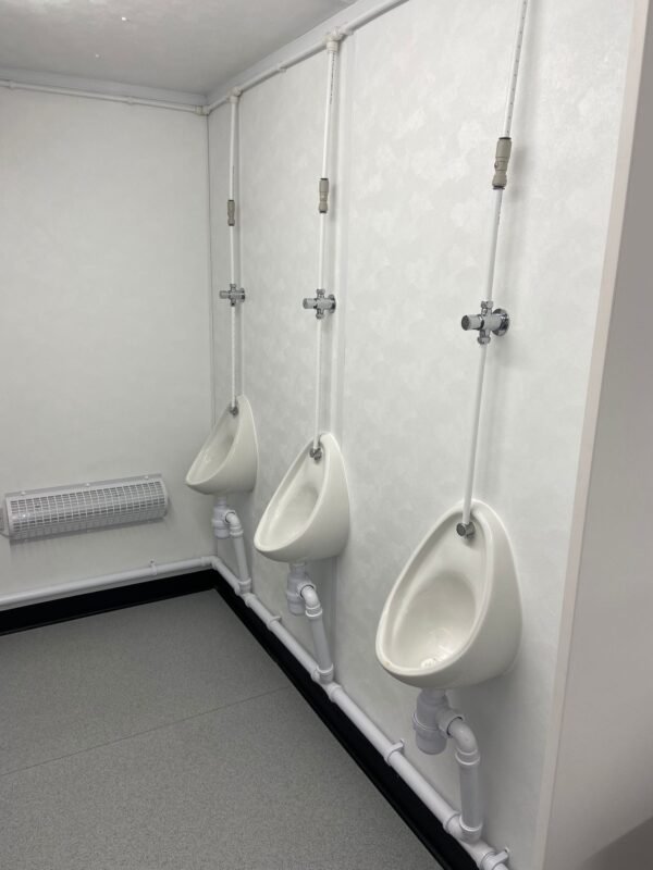 The 6-1 Steel Toilet Cabin features anti-vandal steel construction, 6 WC cubicles plus 1 accessible, basins, urinals, and heaters. Durable, insulated, and perfect for construction sites or outdoor events in the USA.