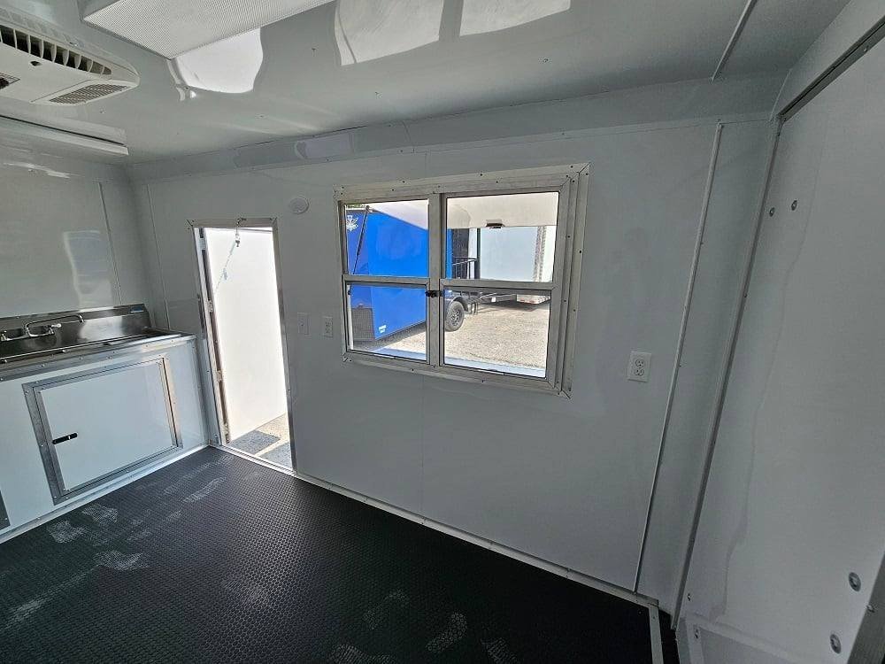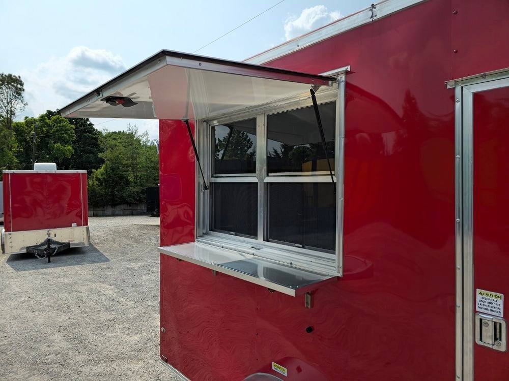 • 4′ Concession window with glass and screens with flip-up counter outside
