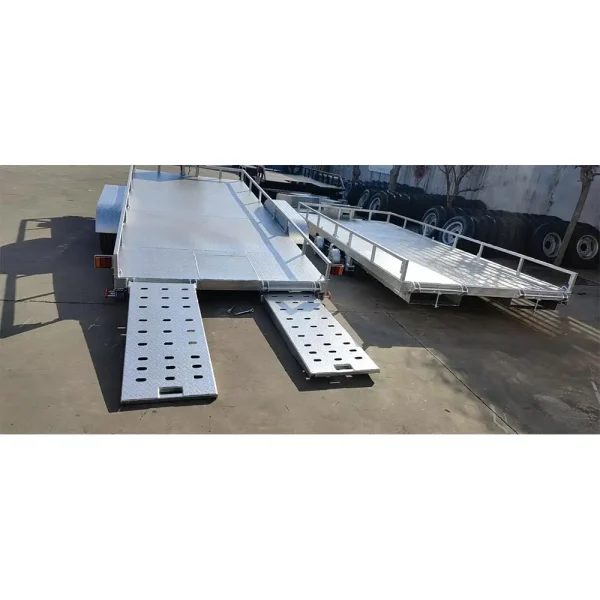 Transport vehicles and even small machinery like mini excavators with ease using our Hydraulic 2 Axle Aluminum Car Trailer, weighing just 700kg. This versatile trailer features a hydraulic tipping system, making loading and unloading efficient and convenient.